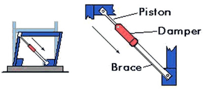 Damping devices are often installed as part of bracing systems. Figure above shows one type of damper-brace arrangement, with one end attached to a column and one end attached to a floor beam.